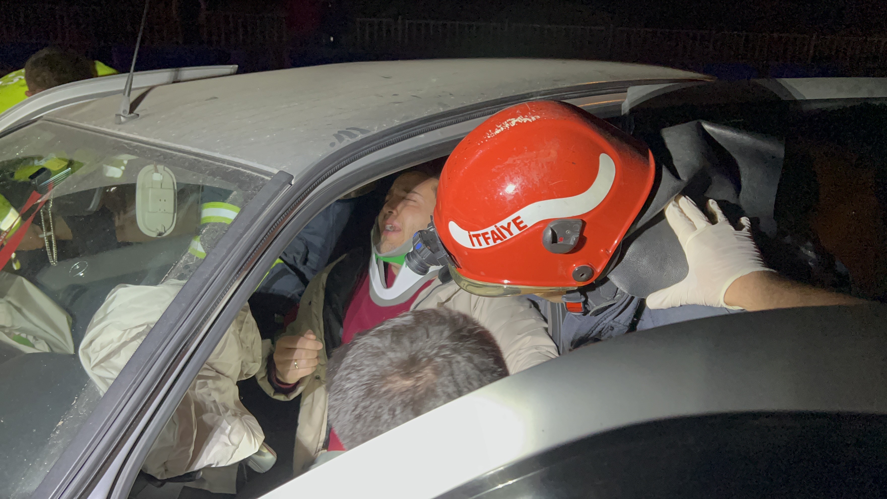 Kazayı görenler tarafından 112 Acil Çağrı Merkezi’ne ihbarda bulunulması üzerine olay yerine sağlık, polis ve itfaiye ekipleri sevk edildi. Yaralı sürücü, itfaiye ekiplerince sıkıştığı yerden kurtarılarak çıkarıldı. Sedyeye alınan B.Y., acısından gözyaşlarına hakim olamadı. Sağlık ekiplerince ambulansta ilk müdahalesi yapılan B.Y. hastaneye kaldırıldı.
