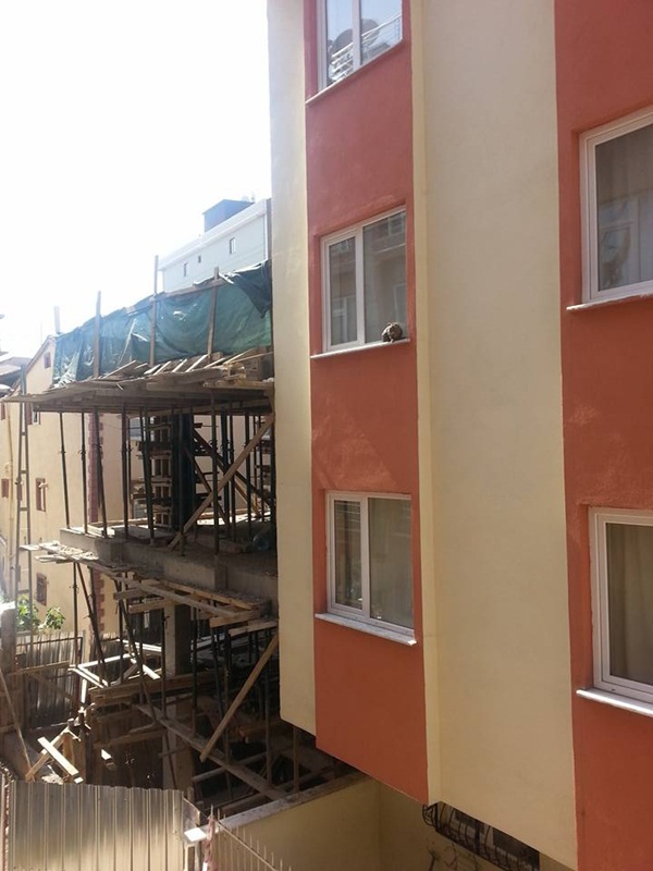 İstanbul'un Ümraniye ilçesinde yapılan inşaatta bir kedinin üzerine yanlışlıkla beton döküldü.