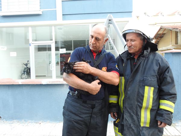 Olay, dün Ulukavak Mahallesi Atalay 1inci Cadde'deki bir apartmanda meydana geldi. Mustafa Çetin Duran'ın yaşadığı 3'üncü kattaki dairede, bilinmeyen nedenle yangın çıktı. Daireden çıkmayı başaran Duran, kedisini kurtarmak için yeniden içeri girdi. Duran, alevlerin arasında kalan kedisini aldı. Yoğun dumandan etkilenen Mustafa Çetin Duran, daire kapısının önünde bayıldı. Gelen itfaiye ekipleri, kapıyı kırıp içeri girerek baygın haldeki Duran'ı ve kucağındaki kedisini dışarı çıkardı. Bir itfaiye eri, burnundan ve ağzından suni teneffüs ile kalp masajı yaparak kediyi hayata döndürdü.