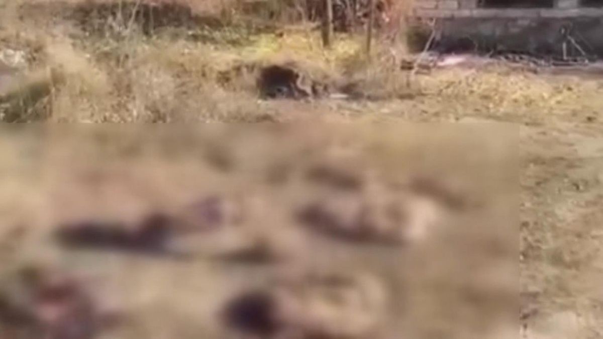 Bir Rus gazeteci tarafından paylaşılan görüntüde, Ermenilere ait ve eşekleri taşıyamadıkları gerekçe gösterilerek, hayvanların başının kesildiği görüldü.