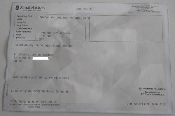 Kılıçdaroğlu, Cumhurbaşkanı adayı Muharrem İnce'nin seçim kampanyasına 13 bin TL bağışta bulundu.