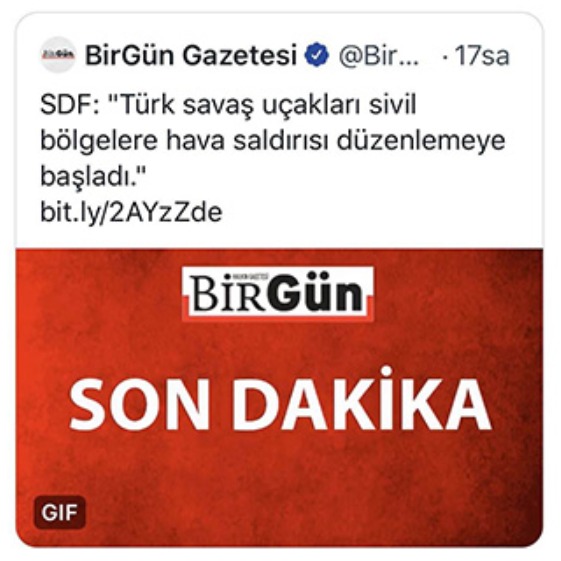 PKK'nın Suriye'deki kolu SDF'nin açıklamalarını haberleştiren Birgün, hainlikte çıtayı yükselttiği haberinde terör örgütünden yana tavır almıştı.