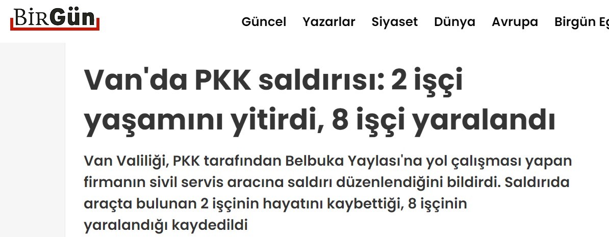 Van'da terör örgütü PKK'nın kalleş saldırı haberleştiren paçavra, şehit olan işçilere şehit dememişti.