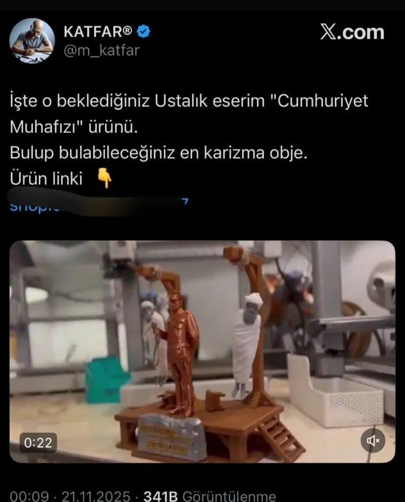 Geçtiğimiz ay "Katfar" mahlasıyla, Şeyh Said ve sarıklı figürlerin asıldığı biblolar üreten şahıs, gelen tepkiler ve şikayetler üzerine ürünün satışını durdurmak zorunda kalarak, sorgu için gözaltına alınmıştı.