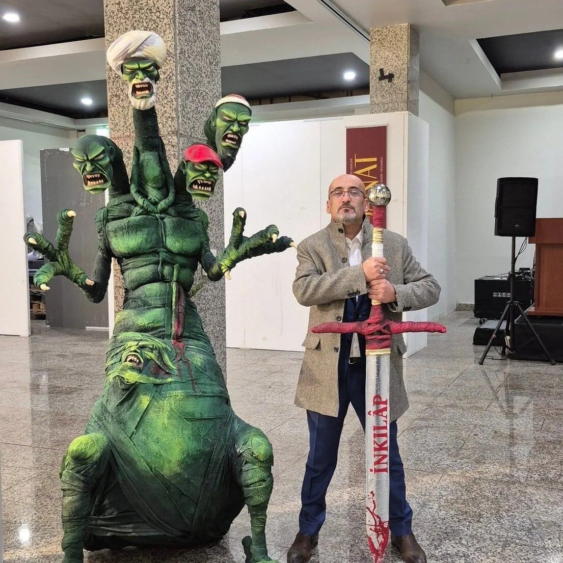 İYİ Parti'nin Kayseri teşkilatında görevli Murat Kaftar, bir kez daha Müslümanların değerlerini hedef aldı. Kaftar, İstanbul Lütfü Kırdar Kongre Merkezi'nde düzenlenen sanat fuarında sergilediği figüründe sarıklı ve sakallı kişileri canavar olarak tasvir etti.