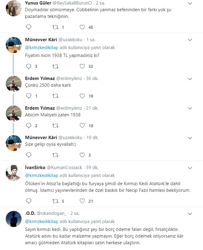 Yılmaz Özdil'in Mustafa Kemal'i istismarına kemalistler de tahammül edemez hale geldi. Son olarak Kırmızı Kedi Yayınevi'nden 'özel baskı' adı altında çıkan Özdil'in 'Mustafa Kemal' kitabına 2500 TL fiyat biçilmesi büyük tepki çekti.