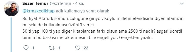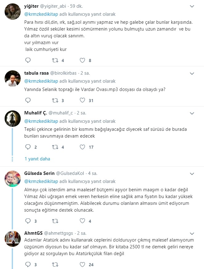 Özdil, kazandığı paralardan gözü doymamış olacak ki şimdi de 'Mustafa Kemal' adlı kitabının özel baskısını çıkarttı. Ancak Özdil, kitabına biçilen 2500 TL'lik fiyat ile Kemalistleri bile çileden çıkardı.