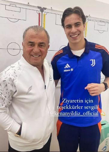 Juventus'ta top koşturan milli futbolcu Kenan Yıldız, Fatih Terim'i ziyaret etti.