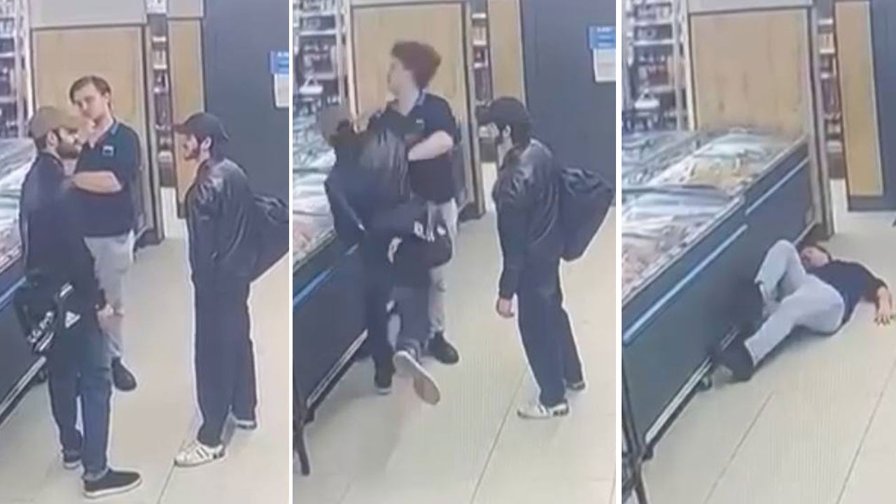 Market çalışanı aldığı darbeyle kafasını önce dondurucuya çarptı ardından da yere yığıldı.