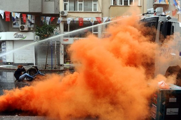 Caddede oturmaya başlayan eylemciler polisin şiddet gösterdiği algısı oluşturmak istedi. Polis ekipleri, renkli gaz bombası atarak eylemcileri dağıtmak isterken, yerde bir süre bekleyen eylemcilerin, "Fotoğraf çektiyseniz kalkıyoruz" diye bağırmaları dikkat çekti. Eylemciler daha sonra gaz fişeklerini tekmeledi.