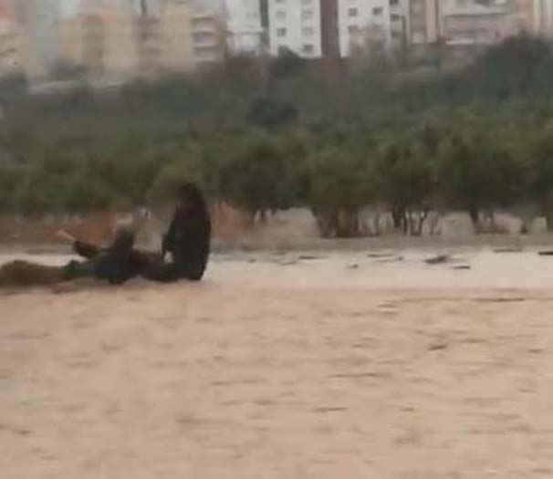 Doğan Haber Ajansı'nın kaydettiği görüntüler Mersin'deki korkunç anları gözler önüne serdi. Görüntülerde, karşıdan karşıya geçmeye çalışan baba ve kızının sel sularına kapıldığı görülüyor. Bir süre sonra baba ve kızı kendi çanalarıyla sel sularından kurtulmayı başarıyor.