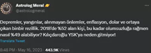 Mert Kök (Astrolog Meral): 2018’de yüzde 52 alan bir kişi, bu kadar olumsuzluğa rağmen nasıl yüzde 49 oy alabiliyor? Kılıçdaroğlu YSK’ya neden gitmiyor?