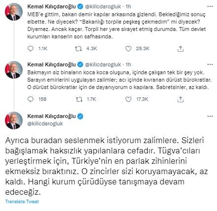 Milli Eğitim Bakanı Mahmut Özer'in kendisiyle görüşmekten kaçtığını iddia eden Kılıçdaroğlu şunları kaydetti: