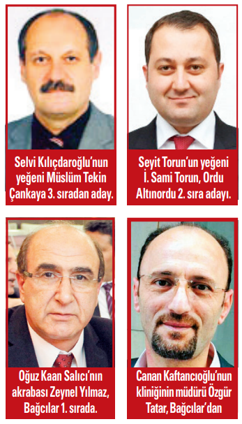 - Genel Başkan Yardımcısı Orhan Sarıbal’ın akrabası Erdoğan Yıldız’ın eşi Nimet Yıldız, Bursa Yıldırım, 4. sıra.