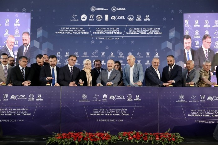 Sanayi ve Teknoloji Bakanı Mustafa Varank, Cazibe Merkezleri Programı kapsamında 4 projenin toplu açılışı, Çalışan ve Üreten Gençler Programı kapsamında 8 fabrikanın tahsisi ile Van Tekstil ve Hazır Giyim Organize Sanayi Bölgesi'ndeki 10 fabrikanın temel atma törenine katıldı. CHP Lideri Kemal Kılıçdaroğlu'nun "yapılmıyor" dediği yatırımların Türkiye'nin dört bir yanında güneş gibi parladığını belirten Bakan Varank, "Görmek için göz lazım, idrak etmek lazım ama maalesef bu anlayış arkadaşlarımızda yok" dedi.