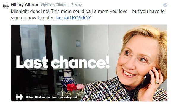 Clinton'un ofisinden 7 Mayıs'ta sosyal medya hesaplarından yapılan paylaşımda, Anneler Günü için takipçiler arasında kura yapılacağı duyurulmuştu. Tweete göre Clinton, kurayla belirlenecek anneleri telefonla arayarak bu özel günü onlarla paylaşacak. Clinton'un telefon görüşmesi sonrası hazırlanacak videonun saat farkından dolayı 11 Mayıs'ta paylaşılacağı belirtildi.