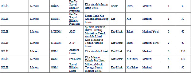 Kilis liselerinin kontenjan kapasitesi ne kadar?
