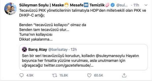 Sinema filmlerinde devletin yöneticilerine hakaret eden, Twitter hesabından Türk milletine tehditler savuran TİP Milletvekili, son olarak da Türkiye Cumhuriyeti İçişleri Bakanı Süleyman Soylu'ya hadsizce hakaret etti.