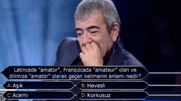 Kim Milyoner Olmak İster yarışmasının dünkü bölümünde sorulan "Amatör nedir" sorusu hatalı çıktı. Sosyal medya kullanıcıları yarışmacıya yeni bir hak verilmesi için kampanya başlattı. Cuma günü yayınlanan Yarışma programı Kim Milyoner Olmak İster'de "Amatör nedir" sorusu hatalı soru tartışmasına neden oldu . Selçuk Yöntem'in sunduğu yarışmada Ege Üniversitesi Fizik Mühendisliği Bölümü mezunu Haşim Sayar'a yöneltilen 30.000 TL değerindeki soru şöyleydi: