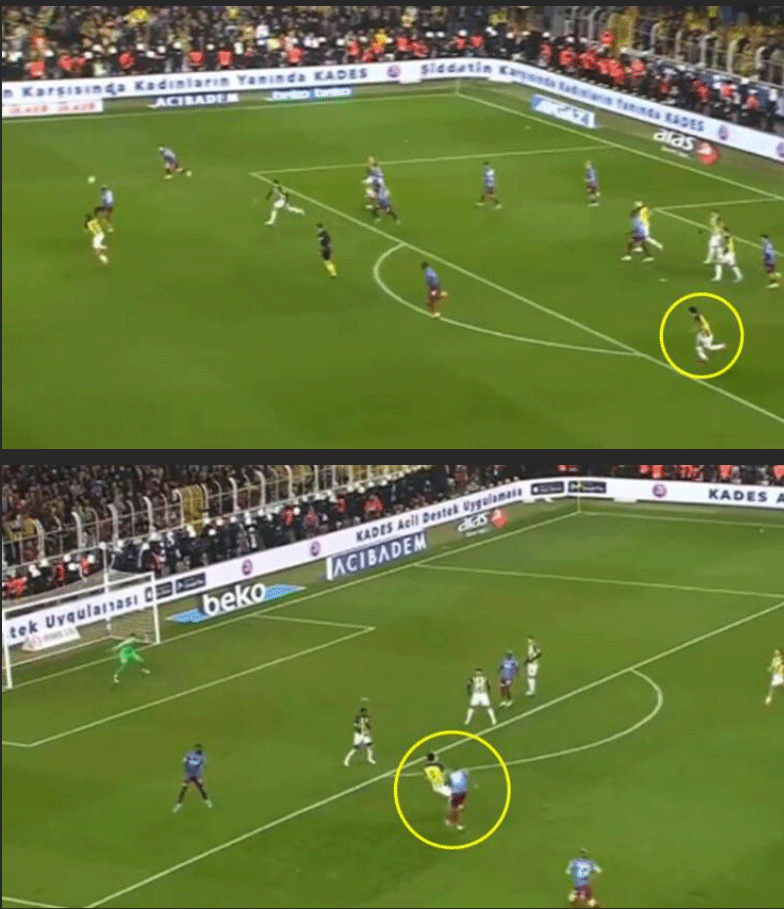 Karşılaşmanın 90+6. dakikasında gelişen Trabzonspor kontraatağına rakip ceza sahası içinde yakalanan 25 yaşındaki futbolcu, yaklaşık 8 saniye içinde görev bölgesine dönerek savunmada kritik bir müdahaleye imza attı.