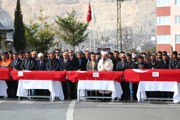 Ermenek'teki maden ocağında dün ve önceki gün cansız bedenlerine ulaşılan 8 maden işçisi kimliklerinin tespit edilmesinin ardından, bugün son yolculuğuna uğurlandı. Ermenek'te Keleşoğlu Camii önünde düzenlenen törene işçi ailelerinin yakınları ve yaklaşık 10 bin kişi katıldı. Cenaze namazının ardından bir madenci yakını Diyanet İşleri Başkanı Mehmet Görmez'e seslenerek 'Şehitlerimize bak, yürek dayanmıyor hocam. Görün, görün. O işverenler utansınlar' dedi. Cenazeler törenin ardından köylerine gönderildi.