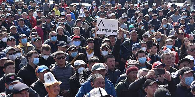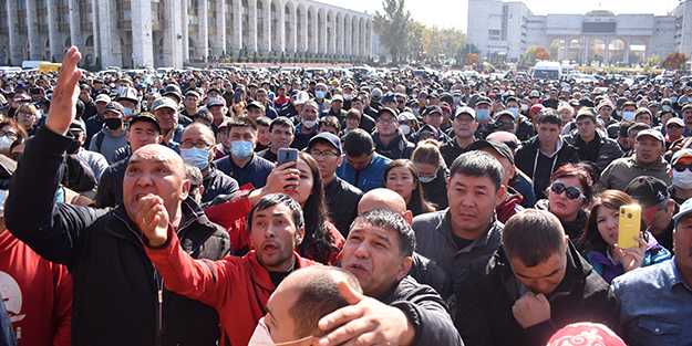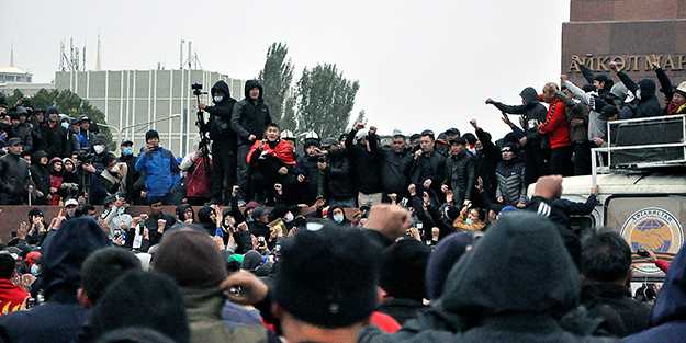 Kırgızistan’da geçen Pazar günü 16 partinin katılımıyla düzenlenen parlamento seçimlerinin ardından, seçim barajını geçmeyen 12 siyasi partinin üyeleri ve destekçileri Bişkek’te seçimin ertesi günü seçim sonuçlarını protesto etmişti. Kırgızistan Merkez Seçim Komisyonu (MSK) Salı günü polisle protestocular arasında çıkan çatışmaların ardından seçim sonuçlarını iptal etmişti.