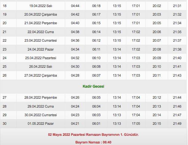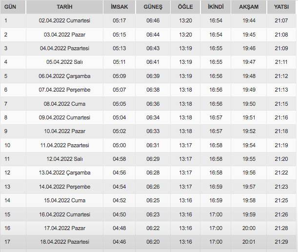 Ramazan imsakiyesi 2022 Kırklareli