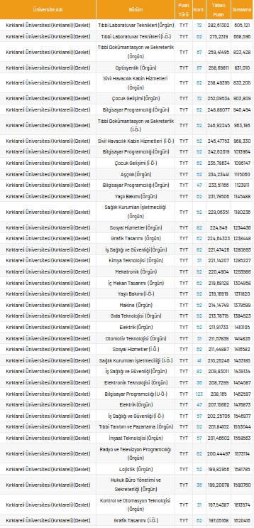 Öğrencilerin başarı durumuna göre çeşitli üniversiteler bulunmaktadır. Bu üniversite girmek için YKS sınavına girmek gerekir. YKS sınavına girecek öğrenciler, hedefledikleri üniversitelerin taban puanlarını ve kontenjan sayılarını merak ediyor. Peki, Kırklareli Üniversitesi taban puanı, en düşük yüzdelik, en yüksek yüzdelik ve kontenjan sayıları kaçtır?
