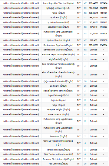 Kırklareli Üniversitesi 2 yıllık taban puanları 2021, yüzdelik dilimleri ve kontenjan sayıları kaçtır?