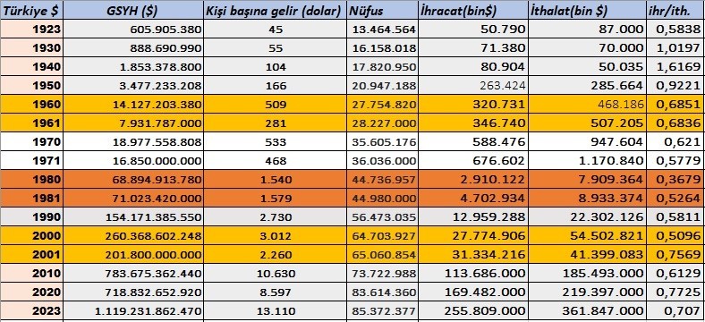 Türkiye ekonomisi darbelerden çıkarak 2023 yılına geldi. Geçen yıl Türkiye’nin GSYH’si 1,19 trilyon dolara yükseldi. Kişi başına düşen milli gelir 13 bin doları aştı. Türkiye 2023 yılında ihracatını 256 milyar dolarla tarihin en yüksek seviyesine yükseltti.