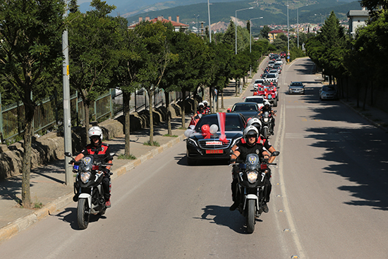 Burada dua ettikten sonra yeniden araca binen kardeşler, motosikletli yunus timleri eşliğinde kent merkezinde tur atarak mahalleye geri döndü. Sokağın başında Gölcük Kaymakamı Mustafa Altıntaş ve Gölcük Belediye Başkanı Mehmet Ellibeş tarafından karşılanan şehit çocukları, törenin yapılacağı evlerinin önüne midilli atlarına binerek gitti.