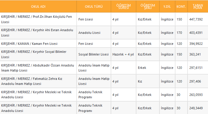 Kırşehir liseleri taban puanı ve yüzdelikleri için tıklayınız...