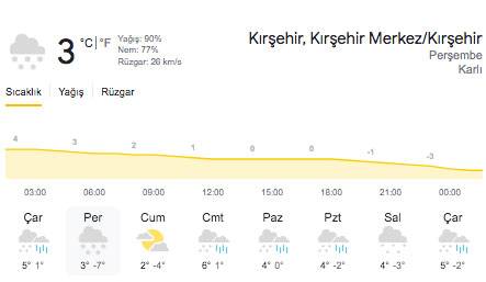 Meteoroloji Genel Müdürlüğü sitesinde yer alan bilgiye göre yoğun kar yağışı görülen iller şöyle: Balıkesir, Denizli, Isparta, Ankara, Kırıkkale, Eskişehir, Kırşehir, Çankırı, Çorum, Kayseri, Konya, Bolu, Van, Erzurum, Hakkari. Meteoroloji Burdur, Isparta, Afyonkarahisar çevreleri ile Konya’nın kuzey ve batısında beklenen kar yağışlarının kuvvetli (10-20 cm) ve yer yer yoğun kar yağışı (21 cm üzeri) şeklinde olacağını belirtti. Bu bölgelerde tipi de zaman zaman etkili olacak. Buzlanma ve dona karşı dikkatli olunmalı. Peki ama Kırşehir Valiliği'nden okulların tatil olup olmadığına dair bir açıklama geldi mi?