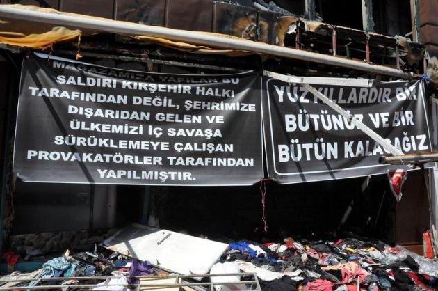 "Mağazamıza yapılan bu saldırı Kırşehir halkı tarafından değil, şehrimize dışarıdan gelen ve ülkemizi iç savaşa sürüklemeye çalışan provokatörler tarafından yapılmıştır."