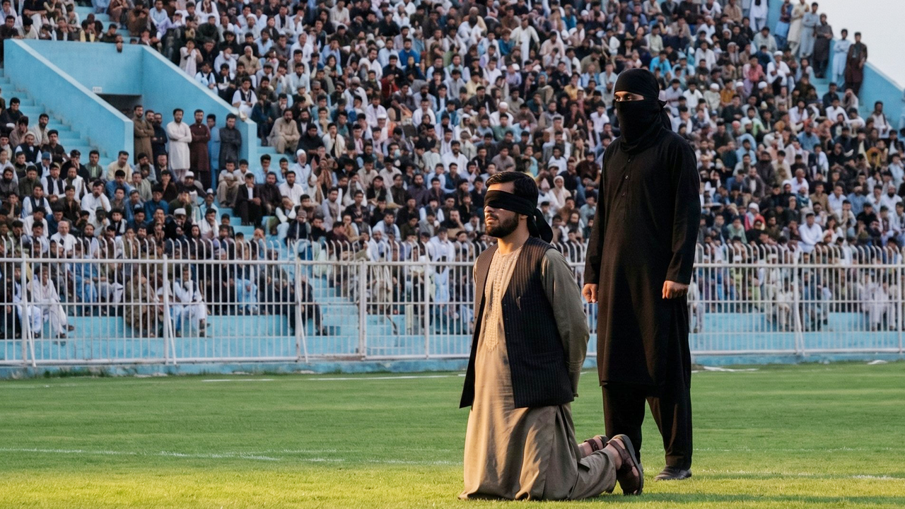 Afganistan İslam Emirliği'nin Host vilayetinde 13 yaşındaki bir çocuk, ailesini öldürmekten mahkum edilen üç kişiyi stadyumun ortasında infaz etti. Yaklaşık 80 bin kişi olayı tribünlerden ve çevredeki tepelerden izledi.