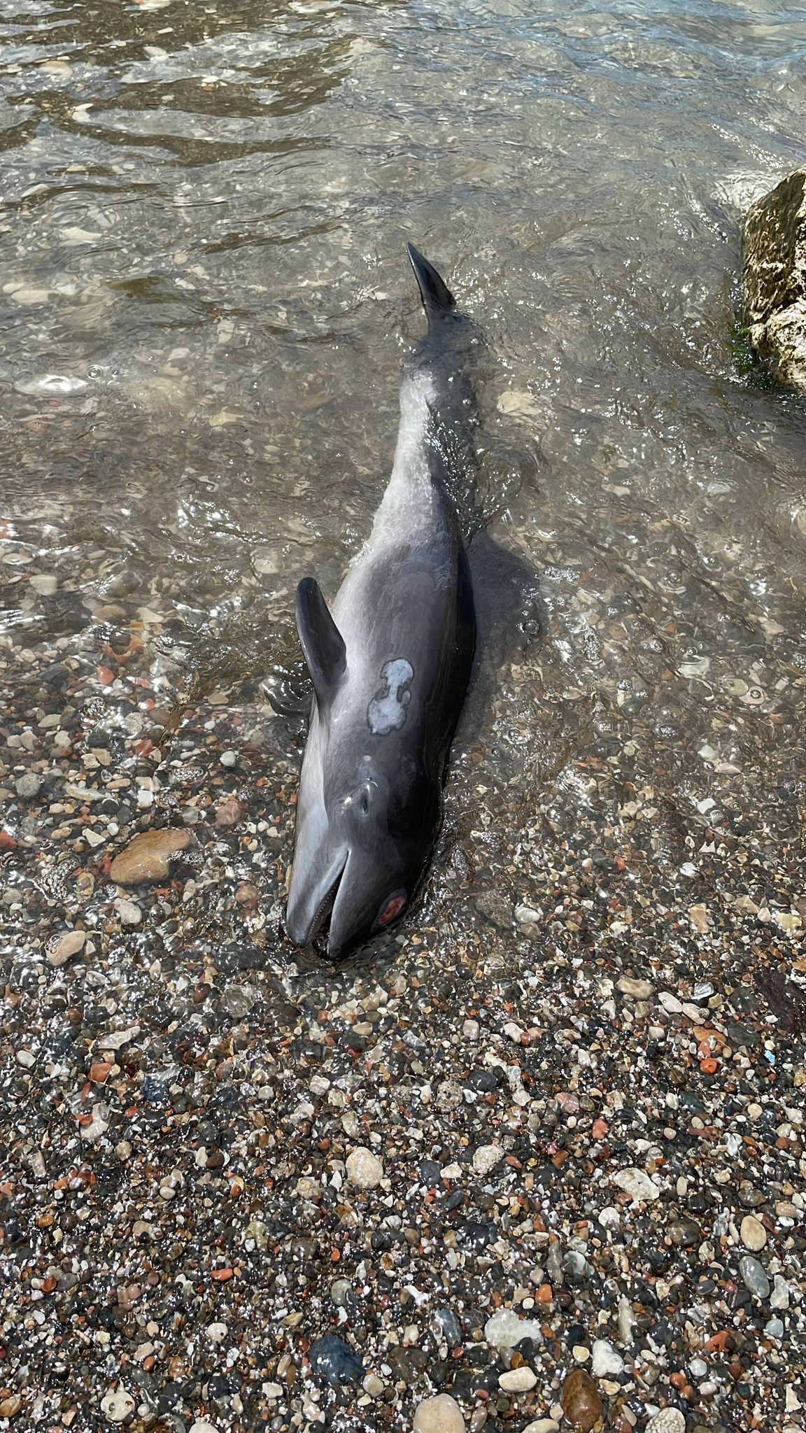 Kastamonu'nun Cide ilçesi Gideros Koyu'nda ölü yunus balığı kıyıya vurdu.