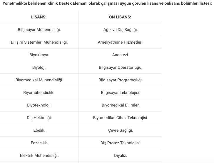 Sağlık Bakanlığı 20 bin yeni personel alımı yapıyor. Bakanlık 20 bin personel alımında 10 bin sözleşmeli personel alırken, 10 bin ise İŞKUR üzerinden işçi statüsünde KPSS şartı olmadan alım gerçekleştiriyor. Sağlık Bakanlığı 1844 klinik destek elamanı alımı yapacağını açıklamasıyla birlikte klinik destek elemanı nedir? sorusu da internet üzerinden sorulmaya başlandı. Peki Klinik destek elemanı nedir? Klinik destek elamanı ne iş yapar? Klinik destek elemanı iş ilanları neler? Klinik destek elemanı nerelerde çalışır?