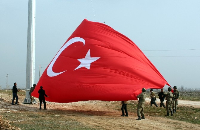 Şanlıurfa Mürşitpınar Sınır Kapısına yakın, sınırın sıfır noktasına dev Türk bayrağı asıldı.