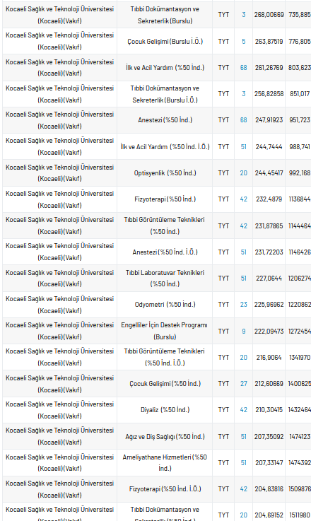 Lise son sınıfı bitiren her öğrenci YKS sınavına girerek lise üniversiteye geçmektedir. Öğrencilerin başarı durumuna göre çeşitli üniversiteler bulunmaktadır. Bu üniversitelere girmek için YKS sınavına girmek gerekir. YKS sınavına girecek öğrenciler, hedefledikleri üniversitelerin taban puanlarını ve kontenjan sayılarını merak ediyor. Peki, Kocaeli Sağlık ve Teknoloji Üniversitesi taban puanı, en düşük yüzdelik, en yüksek yüzdelik ve kontenjan sayıları kaçtır
