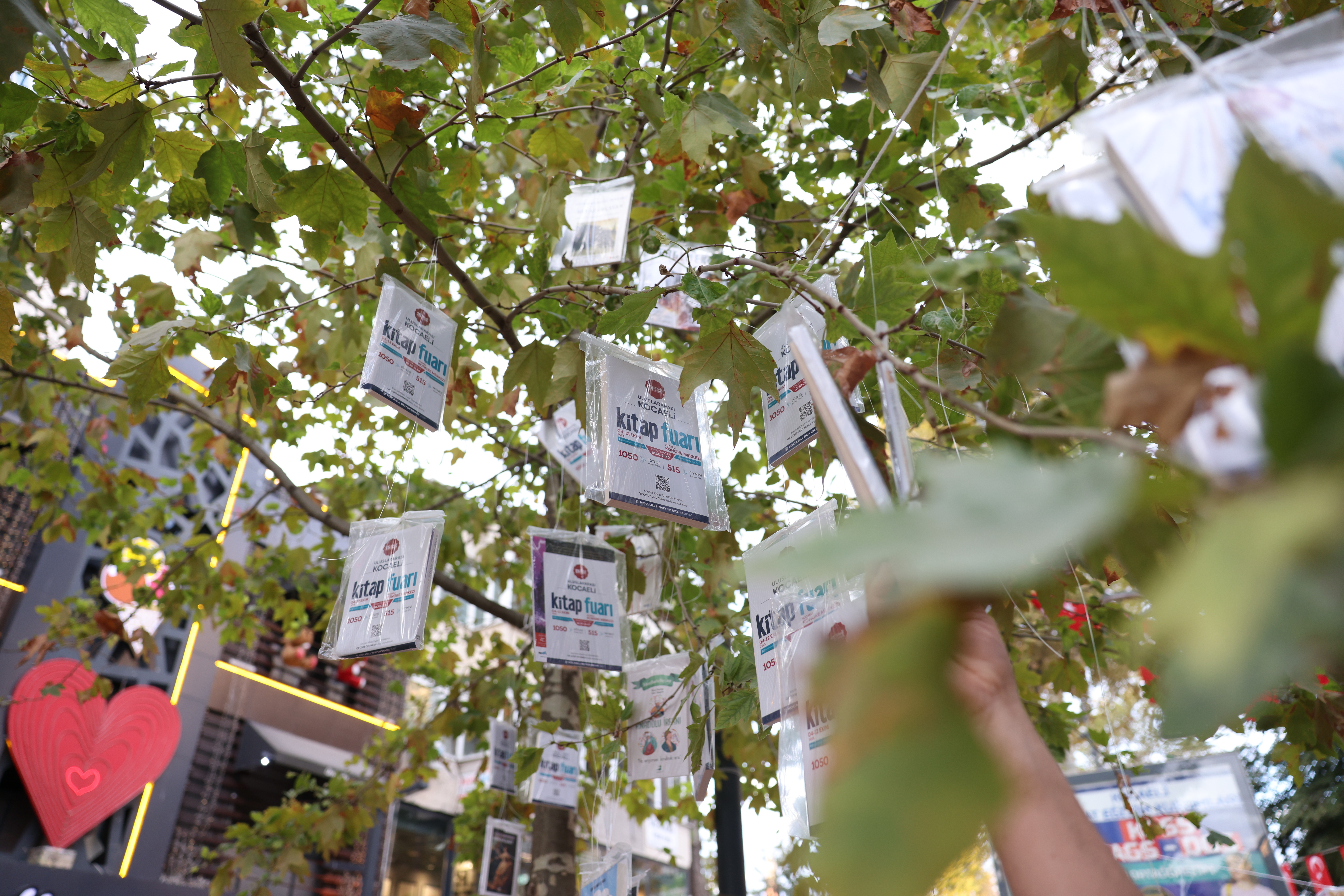 Kocaeli Büyükşehir Belediyesi’nce yarın(4 Ekim Cumartesi) açılışı yapılacak 15. Kocaeli Kitap Fuarı kapsamında düzenlenen “Ağaçlar Kitap Açtı” etkinliği yine renkli görüntülere sahne oldu. Cumhuriyet Bulvarı’ndaki tarihi çınarlara asılan 5 bin kitap kısa sürede toplanırken, Başkan Büyükakın da çocuklara kitap hediye etti.