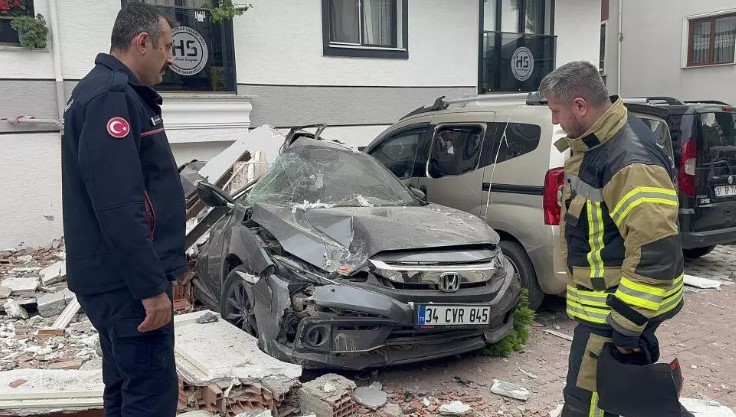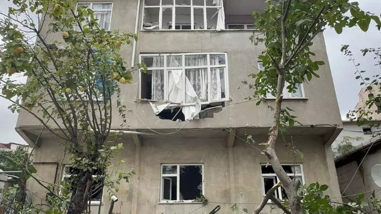 "ŞİDDETLİ PATLAMA SEBEBİYLE DUVAR PARÇALANMIŞ VE KARŞI BİNAYI ETKİLEMİŞ"