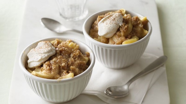 Bir kasede yulaf, dövülmüş ceviz, yulaf, şeker, tuz, tarçın ve tereyağını bir kasede karıştırın.