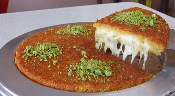 Ocaktan aldığınız sıcak künefenin üzerine soğuk şerbeti gezdirin.