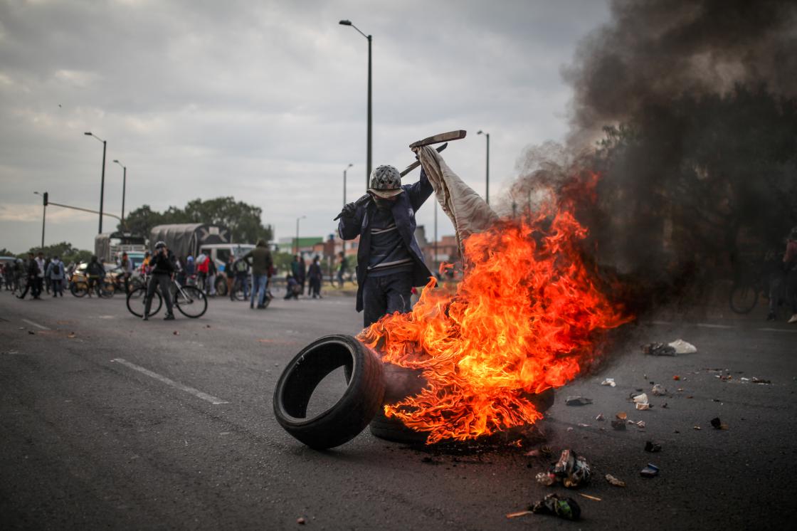 Yürüyüş, miting ve konserlerle 20 farklı noktada eylem yapılan Bogota'nın tarihi merkezi, 26. ve 13. Cadde ile Suba ilçesi, göstericiler ve polisin saatler süren çatışmasına sahne oldu.