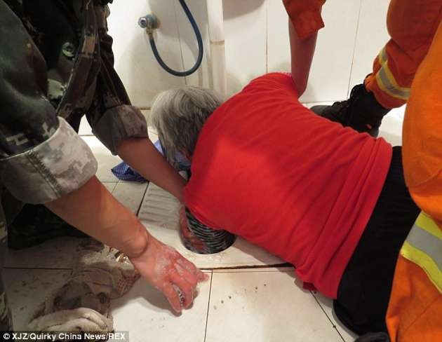 Çin'in Guangyuan eyaletinde takma dişlerini tuvalete düşüren kadın, dişlerini çıkarmak isterken kolu sıkışınca 4 saat mahsur kaldı.