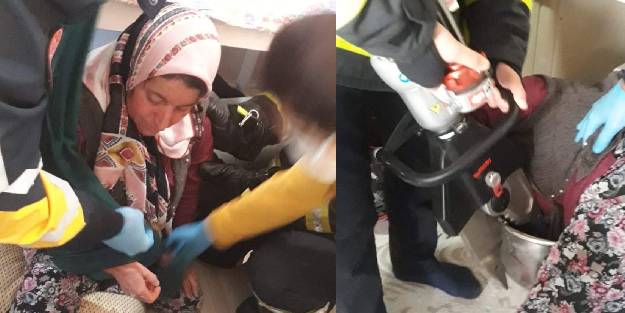 Yalova'da hamur kararken kolunu makineye kaptıran kadını itfaiye ekipleri kurtardı. Kolu merdaneye sıkışan kadını itfaiye ekipleri demir tekneyi keserek kurtardı.