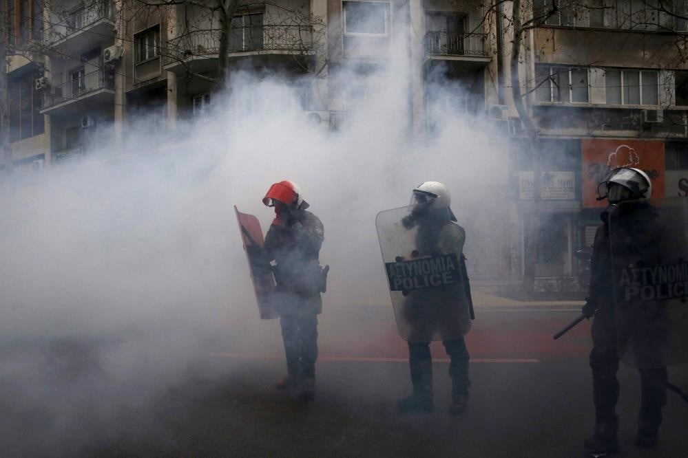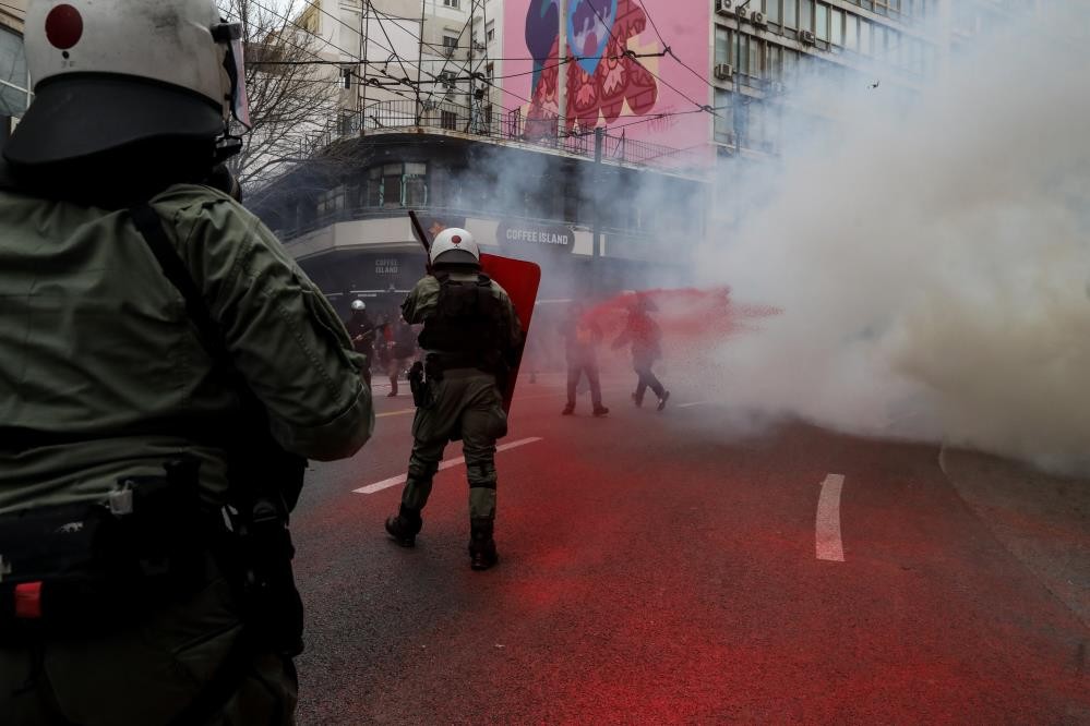 Yunanistan’da 57 kişinin hayatını kaybettiği tren kazasının yıl dönümü sebebiyle sokağa çıkan grup, polisle çatıştı.