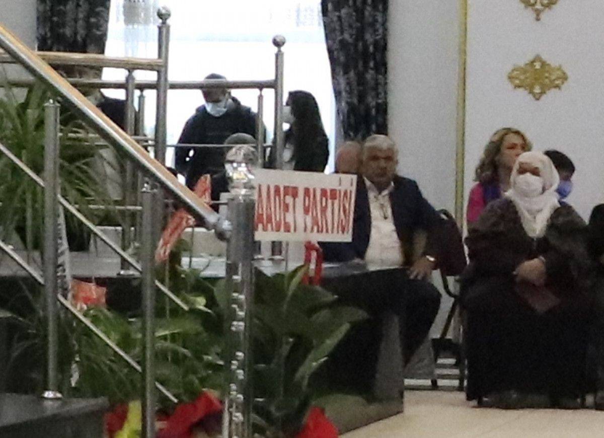 Düğün salonunda gerçekleşen kongrede Saadet Partisi tarafından gönderilen çiçek dikkat çekti.