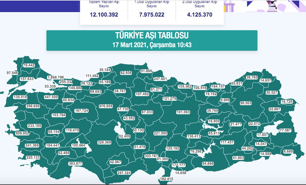 Korona ile mücadele devam ederken, salgından koronmak için de Türkiye başarılı bir şekilde aşılama takvimiini işletiyor. İşte 17 Mart korona aşısı yaptıranların sayısı: