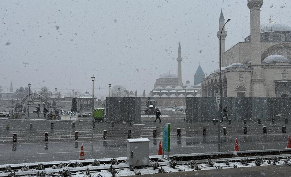 Meteorolojinin karla karışık yağmur tahmini Konya'da kendini gösterdi. Öğle saatlerinde başlayan kar yağışı, özellikle şehir merkezinde aralıklarla yoğunlaşarak devam etti. Araçların üzeri, parklar, kaldırımlar ve çatılar beyaz örtüyle kaplanırken, zemin kar tutmadı.